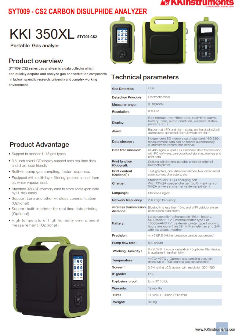 SYT009-CS2-KKI 350XL PORTABLE CS2 CARBON DISULPHIDE ANALYZER / GAS ANALYSER
