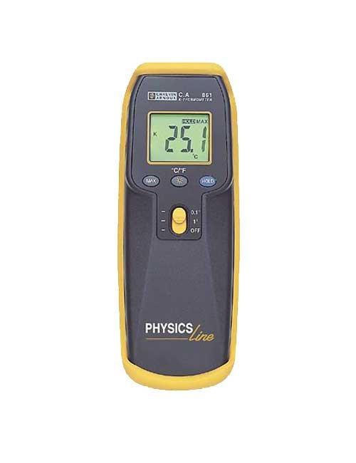 Protected by a shockproof sheath in a compact case, the Physics Line CA861 thermometer, fitted with a K-type thermocouple input, measures temperatures between -40 and +1,350°C, with a typical accuracy of 0.1% + 1°C.