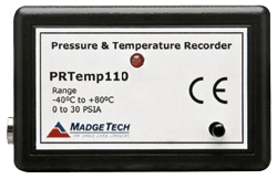 The PRTemp110 is a miniature, battery powered, stand alone pressure and temperature data logger. The PRTemp110 features a real-time clock module that extends the battery life to >10 years and allows for high speed downloads. This is an all-in-one compact, portable, easy to use device that will measure and record data for up to 16,383 measurements per channel. The storage medium is non-volatile solid state memory, providing maximum data security even if the battery becomes discharged. The device can be started and stopped directly from your computer and its small size allows it to fit almost anywhere. The PRTemp110 makes data retrieval quick and easy. Simply plug it into an empty COM or USB port and our user-friendly software does the rest.